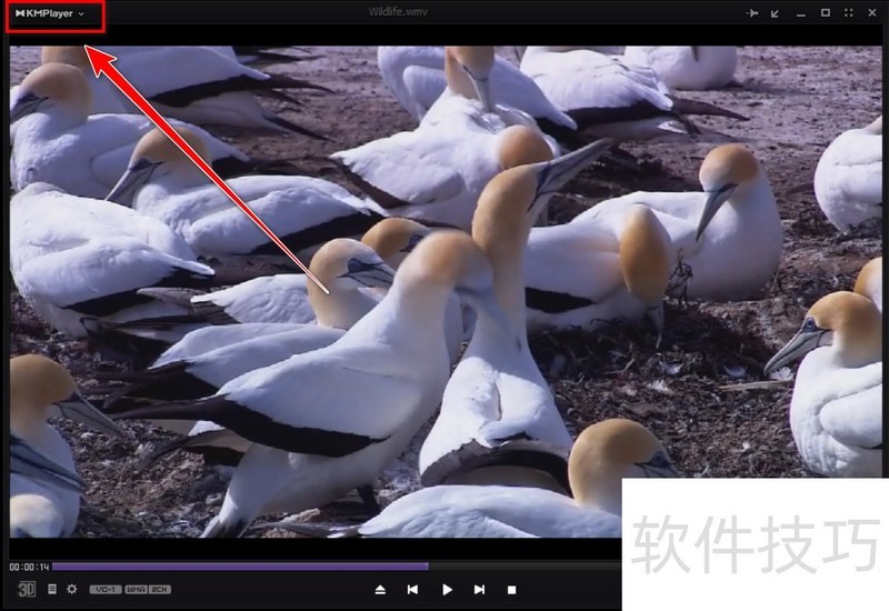 2、 找到左上角KMPlayer标志,点击它,如下图