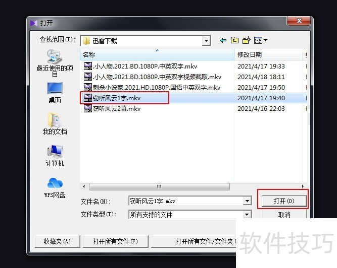 4、 这时系统会调用我们的文件目录,我们选到我们想要打开的文件,然后点击打开