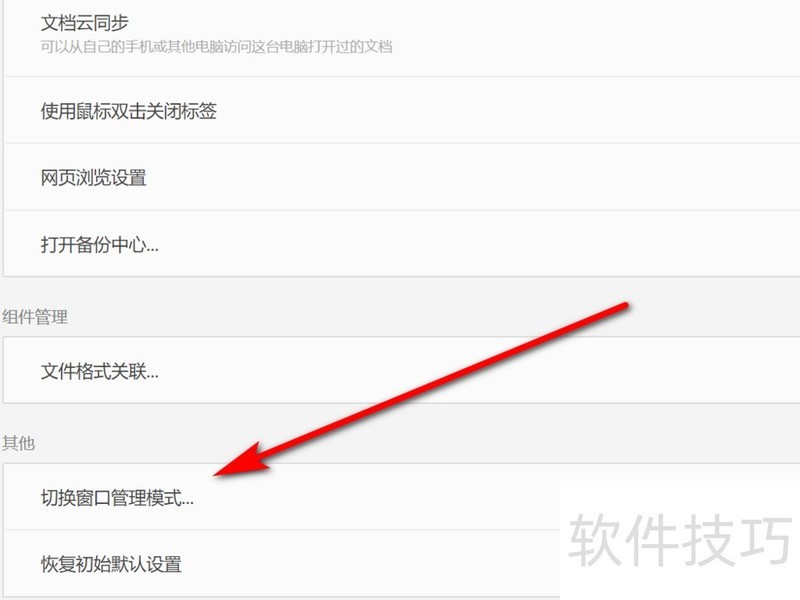 4、 在设置中心,点选“切换窗口管理模式”。