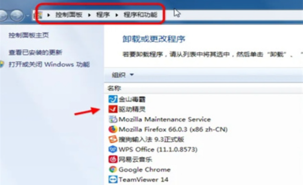 2、在程序列表中,浏览并找到“驱动精灵”或“DriverGenius”。