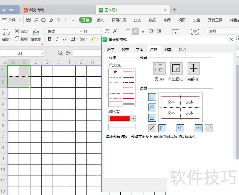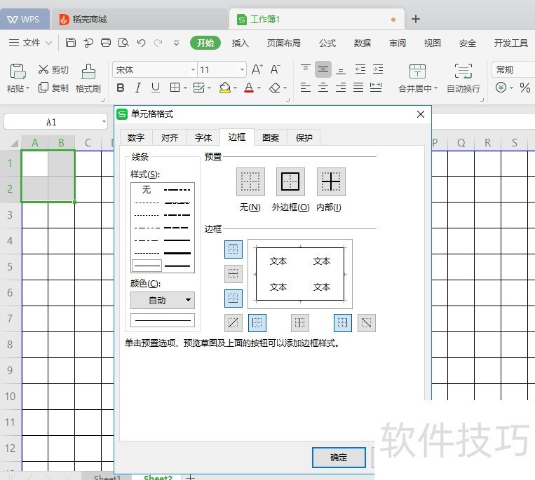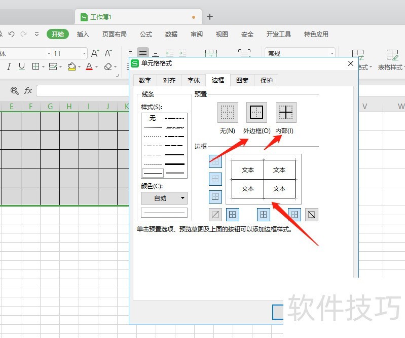 8、 先选择[边框]里的样式和颜色,点击外边框设置.确定.