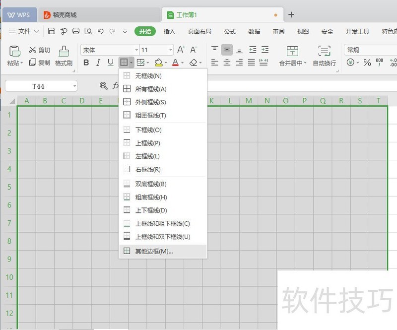5、 用鼠标选择设置好的行和列,选择工具栏上的[其他边框]