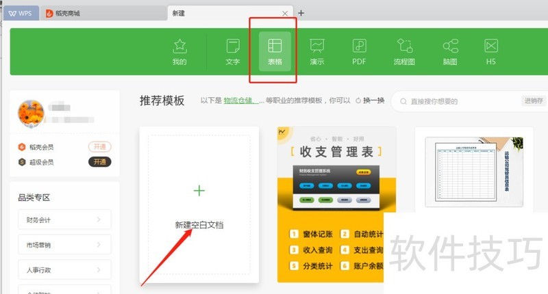 1、 打开新的wps文档,新建一个空白的excel表格即可。