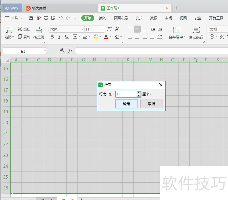 4、 行高这里也是选择数字输入1,单位选择厘米.