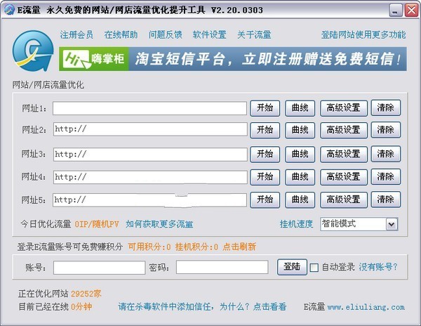 E流量是一款绿色免费的刷流量软件,能够帮助用户快速提升流量和人气。操作简单,只需输入需要提升流量的网址即可开始使用。该软件基于沙盒技术,安全可靠,并且支持24小时精准控制流量。用户可以定义流量来路和目标地址,避免网站中的不正常代码对用户造成威胁。此外,该软件还支持XP、Win7等主流操作系统。
