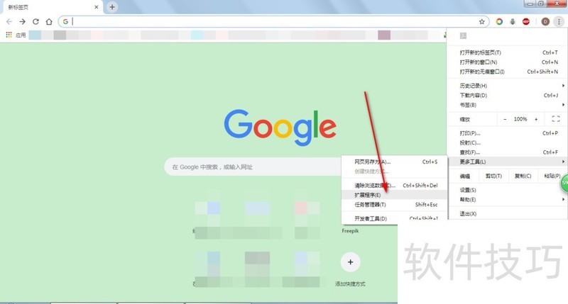 2、 那么我们点击更多工具-扩展程序。
