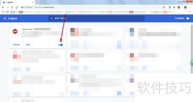 3、 这个时候会显示所有扩展程序和插件。那么我们找到AD BLOCK。