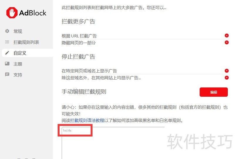 在360浏览器给adblock plus插件添加规则?