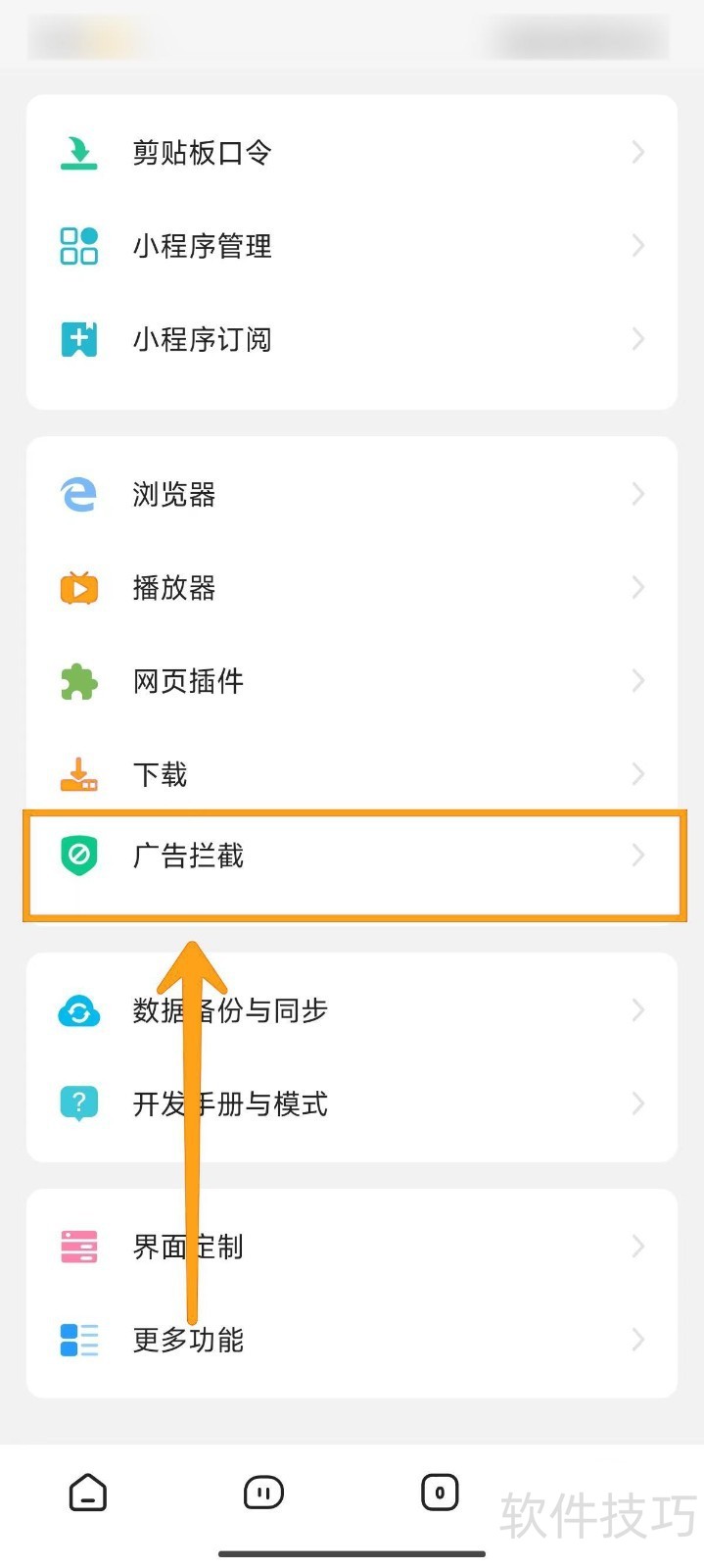2、 在设置界面中,找到并点击【广告拦截】选项进行配置。
