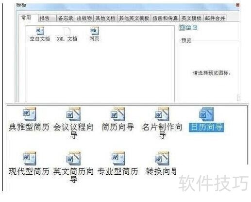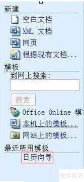 2、 点击打开本机模板,出现模板对话框,如下图1,找到“其它文档”选项卡,从中选择“日历向导”,选择好后,点击“确定”;
