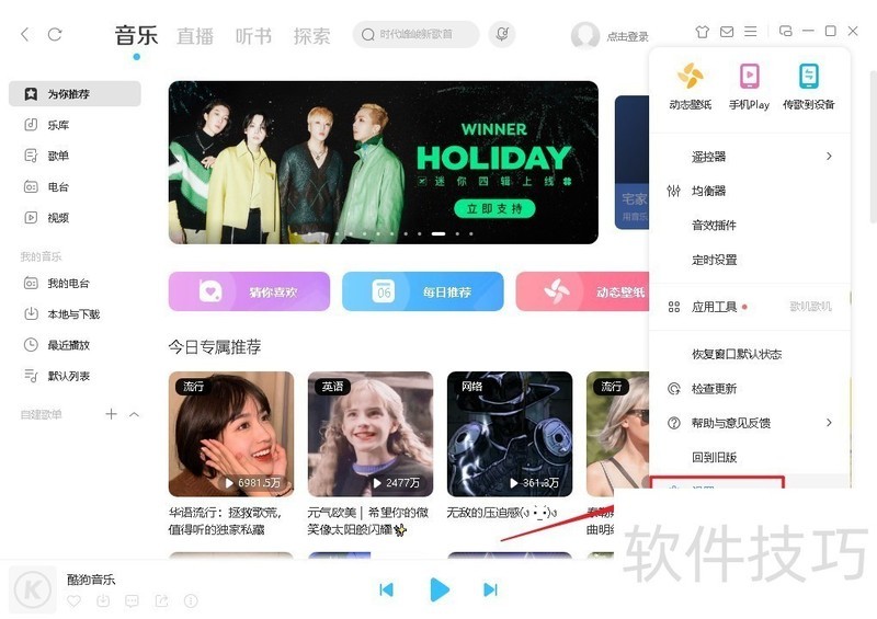 2、 点击了?酷狗音乐右上角中的 设置?