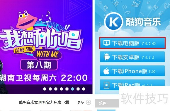 2、 进入酷狗音乐播放器官网,在右侧找到“下载电脑版”进行下载播放器