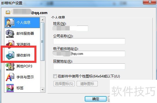 5、 进入邮箱账户设置点击邮箱的属性,进入邮箱账户设置功能页面,在邮箱账户设置功能页面中,找到接收邮件功能。