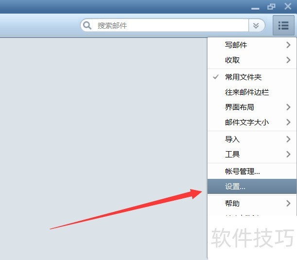2、 登录自己的邮箱,进入邮件主页,点击右上角的三条线功能键,然后选择“设置”,如下图