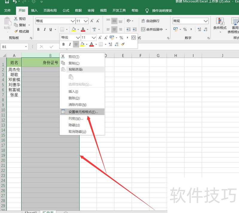 3、 接着全选身份证号那一栏,右击选择“设置单元格格式”。