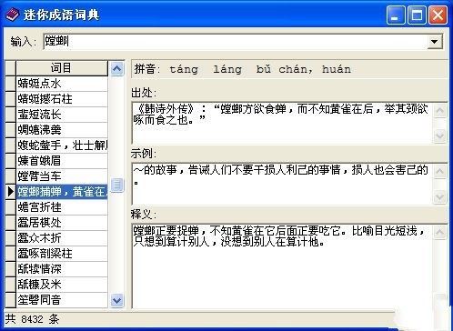 这款成语词典体积小巧,仅1.25MB,包含4.2MB的成语词库,提供了读音、出处、示例和释义等丰富的信息。它是一个方便实用的成语查询工具,适合需要快速查找成语的用户。