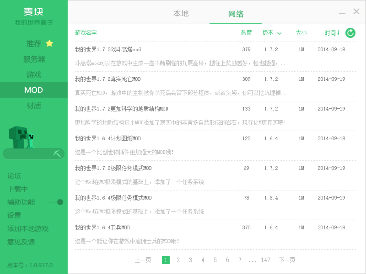 官方软件分类:游戏盒子大小:8.3 MB时间:2026-01-05软件介绍:麦块我的世界盒子是一款我的世界minecraft的专业辅助工具,集合我的世界minecraft各类资源,轻松管理MOD, 立即下载我玩游戏盒子 1.0
