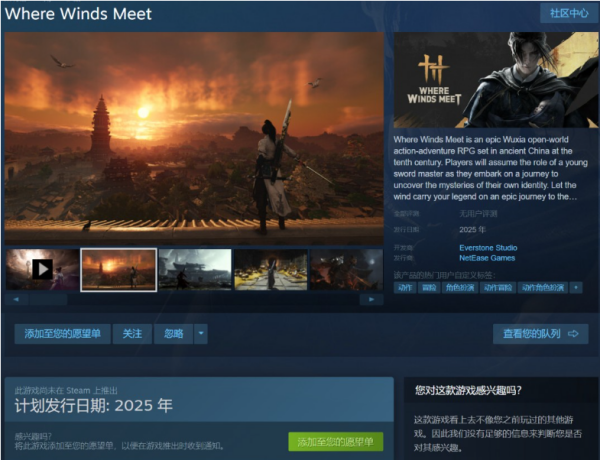 燕云十六声2025年内登陆Steam但锁国区,同时Epic平台已登陆