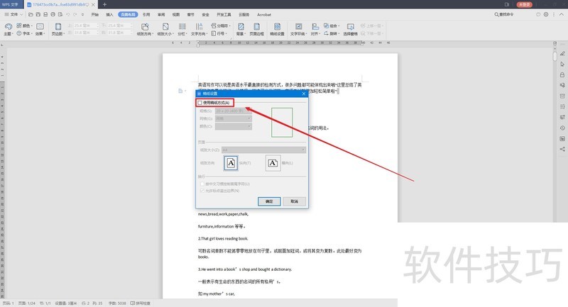 3、 在“稿纸设置”内勾选“使用稿纸方式”。