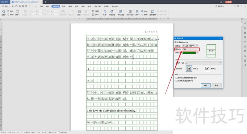 5、 如果想要将稿纸改为“行线”稿纸,在网格内切换即可。