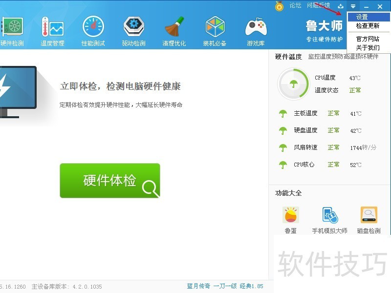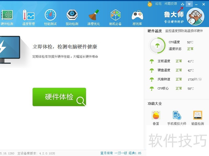 5、 点击鲁大师右上方按钮