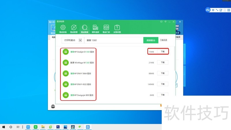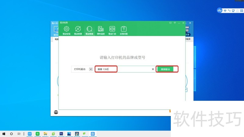 4、 第04步,输入打印机型号,如惠普M1360,点击“搜索驱动”。