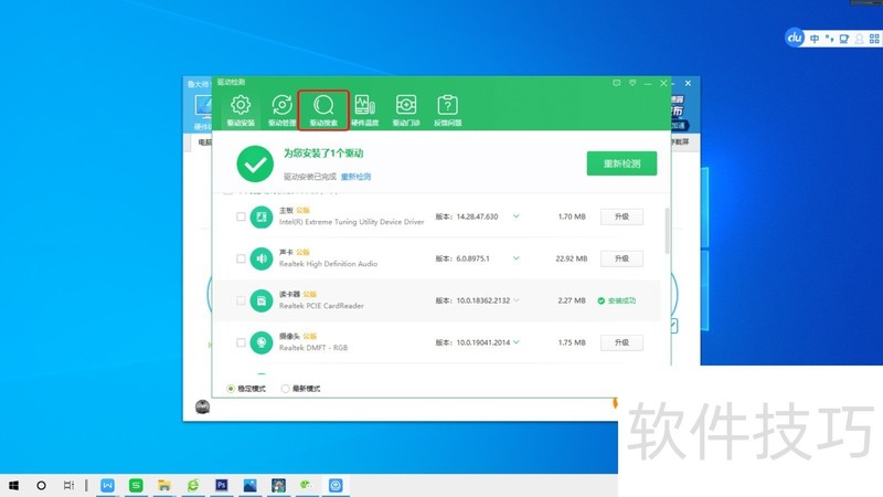 2、 第02步,点击驱动检测菜单下的“驱动搜索”。