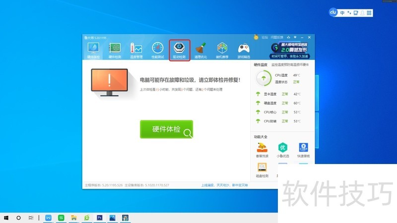 1、 第01步,打开鲁大师,点击“驱动检测”。