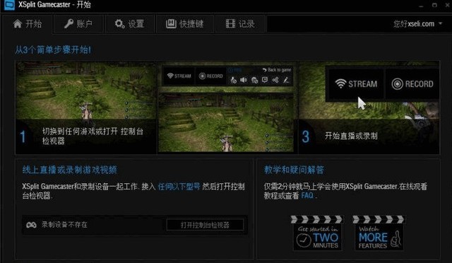 XSplit Gamecaster 让你容易直播和记录你最伟大的游戏时刻只需按下一个按钮. 它是简单, 容易使用的,完美的与世界分享你的游戏。XSplit Gamecaster软件优点:不用设置分辨率,分辨率比例、黑边等等,一切都是XSplit自动设置,自动顶满全屏,根本不需要你来操心不再卡顿,游戏专版统一采用类似游戏源方式读取游戏程序录制,并且能穿透一些特别的游戏,比如可以随意录制国服LOL,不用打反TP补丁,而采用这种特殊的方式并且优化,录制视频的流畅度大大提升,大幅降低电脑性能的压力。设置和使用简化到极致,再也没有复杂的操作了直播智能设置,自动测试网速并且自动调节直播参数,直播小白再也不用看教学了,轻轻点一下就可以直播支持更多游戏,这一点更逆天,所有游戏在他面前都一样,你只需要打开游戏按下快捷键就可以录制完美的视频,CF录制麻烦?你只需要点一下随意录。录制模式支持暂停功能,暂停哟亲!XSplit Gamecaster软件不足之处:切出游戏时,会强行切换到XSplit的暂离画面,当然这个暂离画面你可以去编辑的不可录桌面,只能录制游戏无法调节色彩、亮度等颜色方面的设置简单化的东西,就注定无法专业细致的定制设置,比如虽然提供了清晰度等级,但无法填写具体的码率参数,一切都以360P、720P这些等级为标准。 XSplit Gamecaster截图1