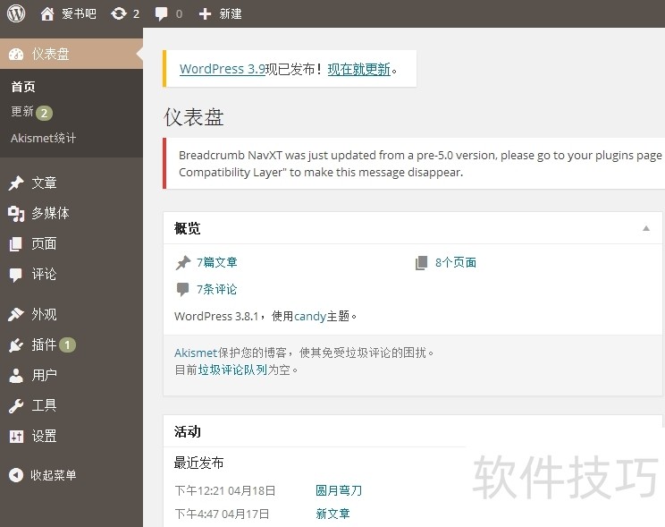 1、 进入wordpress网页,进入自定义标签栏。2点击更换主题,可以更换一些安装的主题。如果默认的主题不喜欢可以点击添加主题,在添加主题里面有很多wordpress的免费主题可供挑选。点击安装就可以保存下来,在更换主题里更改。3在接下来选下里可以增加文章、页面等。在更多操作里可以对网站的评论等进行设置。4在用户管理中可以管理这个博客里的所有用户