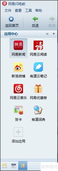 1、 打开闪电邮,点击左下角的【应用中心】按钮。可以看到应用中心中包含的应用程序。