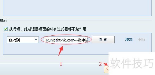 3、 选择”则执行“勾选”执行后~~~~~~~~~“,选择”移动到“(图一),点选后面的“浏览”,在弹出的界面下依次选择“收件箱”-“新建的项目名称”点“确认”(图二)。4退回上一界面,“移动到”后面的已经选择好的路径(图一)。当然也可以选择”只要符合以下任一条件“和“浏览“后面的”增加“,以增加过滤的条件。此功能根据情况适当选择。