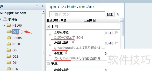 5、 现在开始使用过滤器的过滤邮件夹功能,依次单击收件箱--过滤邮件夹(图一), 出现过滤邮件界面和进度条(图二)。6完成后,就可以将带Q15的邮件全部收纳到Q15命名的邮件夹中。