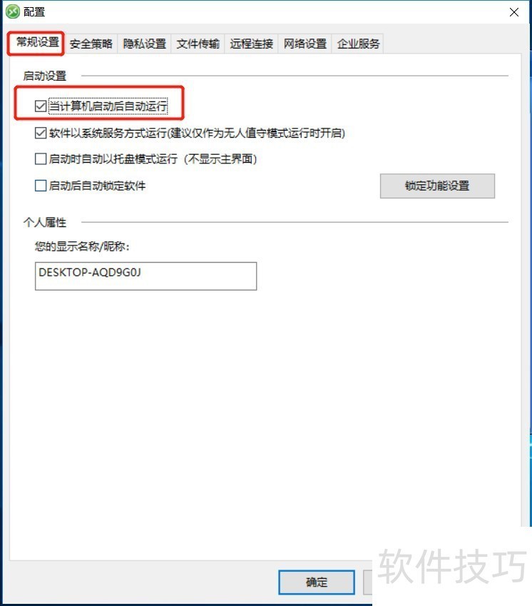 3、 点击【常规设置】选项框勾选【当计算机启动后自动运行】,这样电脑启动后程序会自动启动点击【确定】