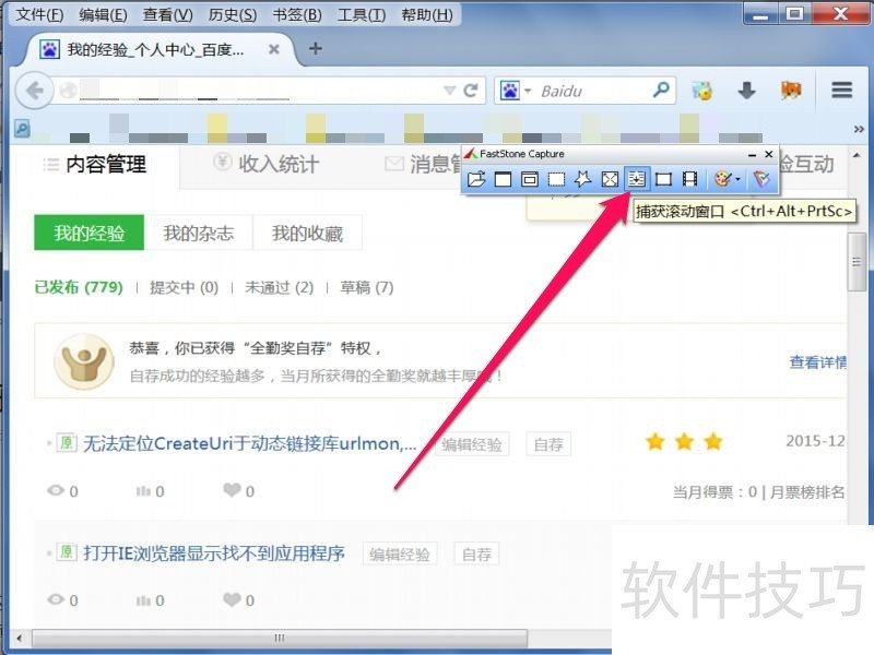 1、 这个软件网上有下载,安装到电脑后,桌面有快捷图标,直接启动它。这个软件打开后,开始只有一个悬浮窗口。2然后打开要截取的网页,在FSCapture悬浮窗口上找到滚动截图工具,如下图。