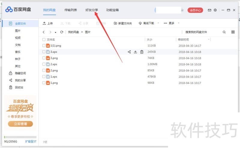 2、 点击窗口中的好友分享进入到好友分享页面,如图
