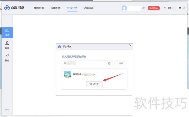 5、 输入好友账号,点击搜索,显示搜索到的好友,如图