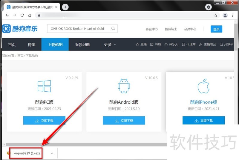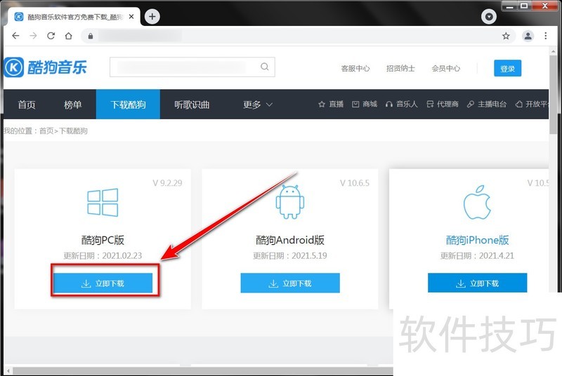 1、 打开酷狗官网,点击“下载酷狗”。