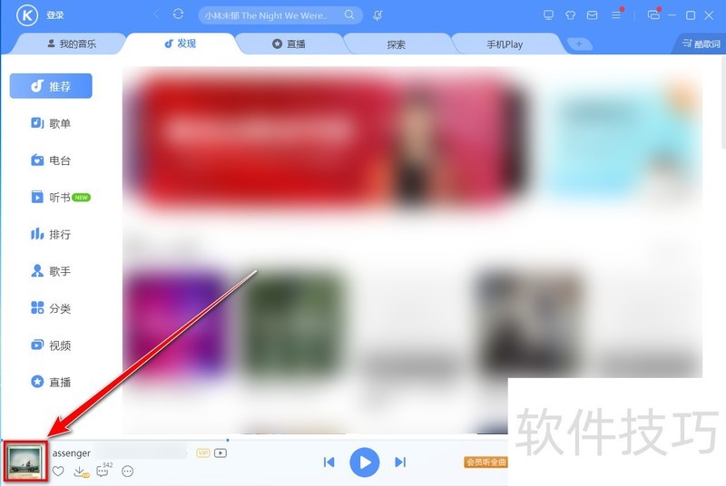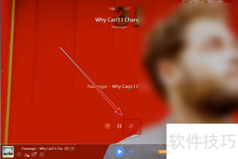 7、 歌曲开始播放后,点击控制栏左侧的“歌曲封面”,可打开“歌词写真”页面。