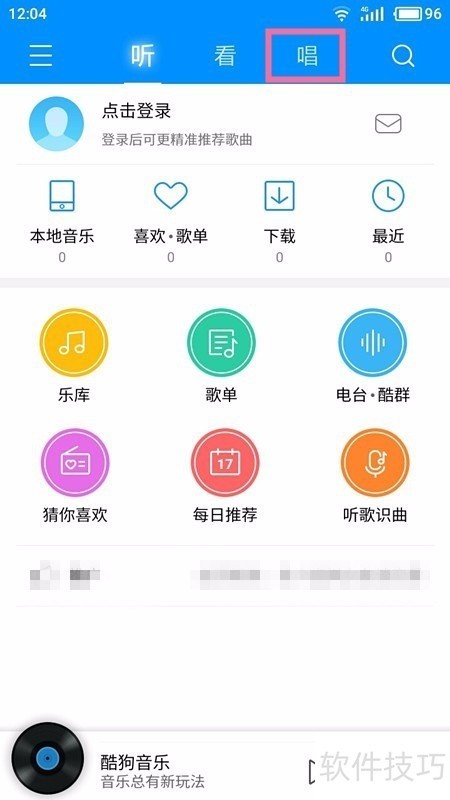 1、 打开酷狗,找到【唱】。
