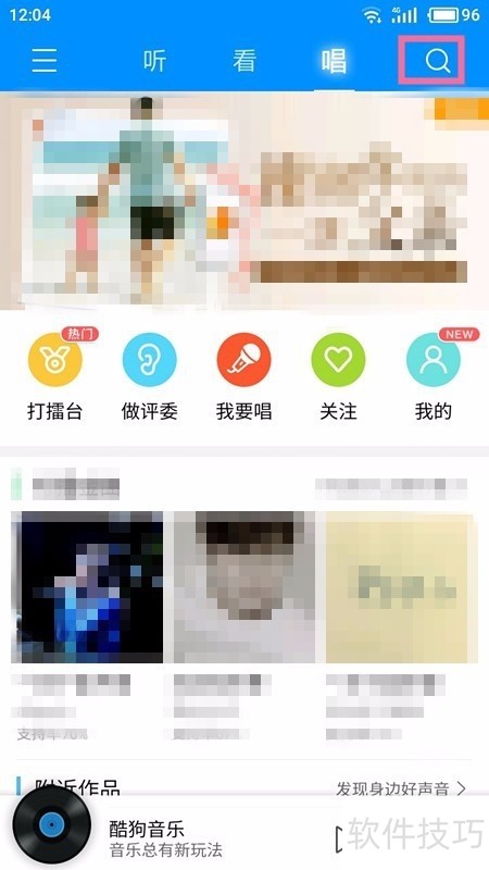 2、 打开【唱】,找到【搜索】。