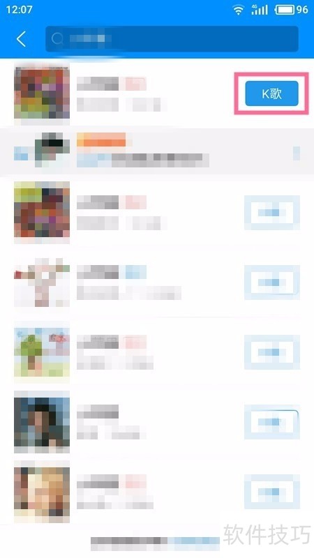 4、 在弹出的歌曲列表中,点击【K歌】。
