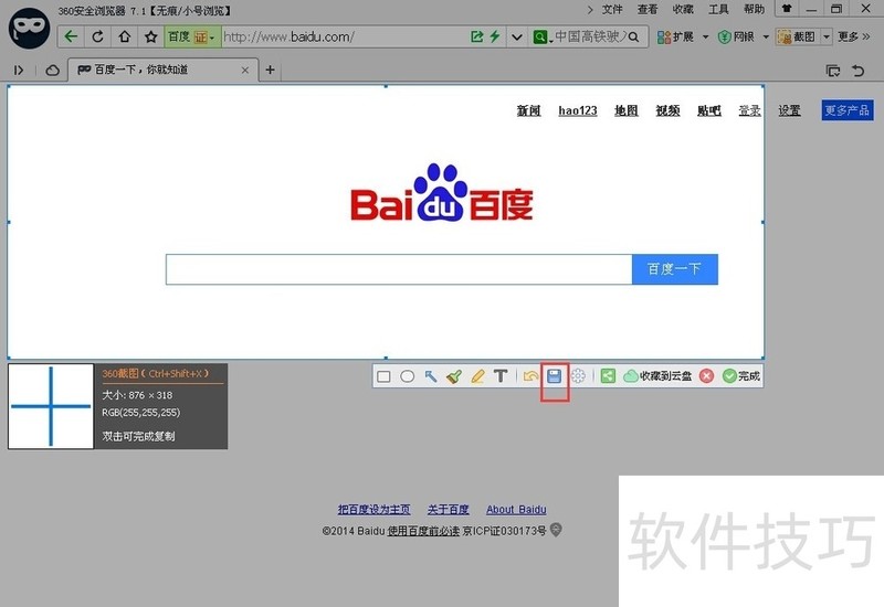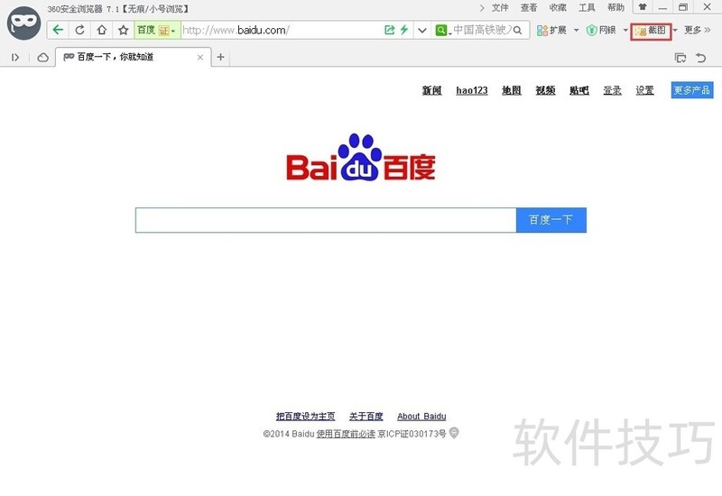 1、 用360安全浏览器打开您要截图的网页,然后点击截图按钮。