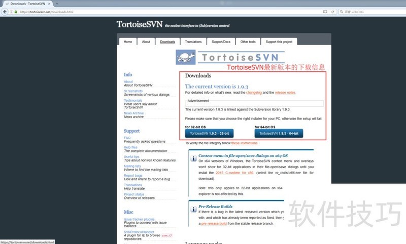 3、 找到:TortoiseSVN最新版本的下载信息,如图所示