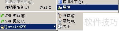 10、 可能有的人因为觉得太繁琐,而不填写注释,这不利于以后的版本控制,可以将强制在提交的时候写注释,首先单击右键,选择TortoiseSVN->属性,如下图所示: