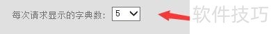 5、 在“字典”窗口中,设置每次请求显示的字典数,如:设置为5