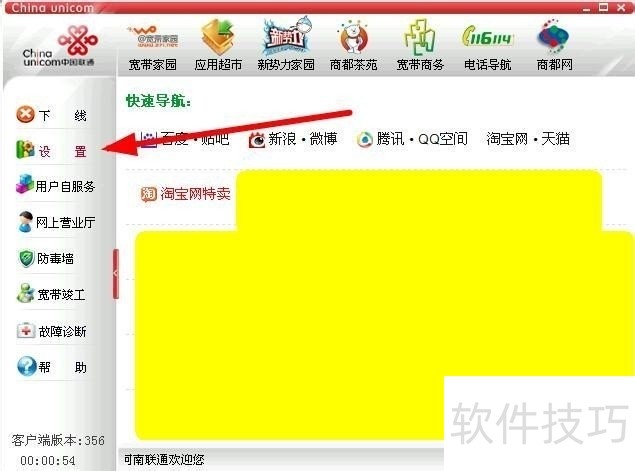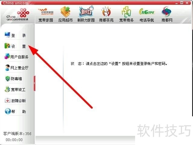 1、 打开宽带我世界,点击左边的设置。