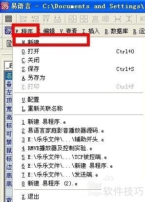 1、 启动易语言。2选择工具栏中的“F 程序”,然后在弹出列表中选择“N 新建”。