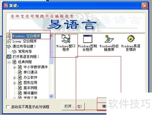 3、 第二步搞定后,在弹出的标题为“新建:”的窗口中鼠标左键单击“Windows窗口程序”,然后鼠标左键单击标题为“确定(o)”的按钮。
