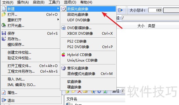 1、 打开“文件”菜单下“新建”-》“数据光盘镜像”